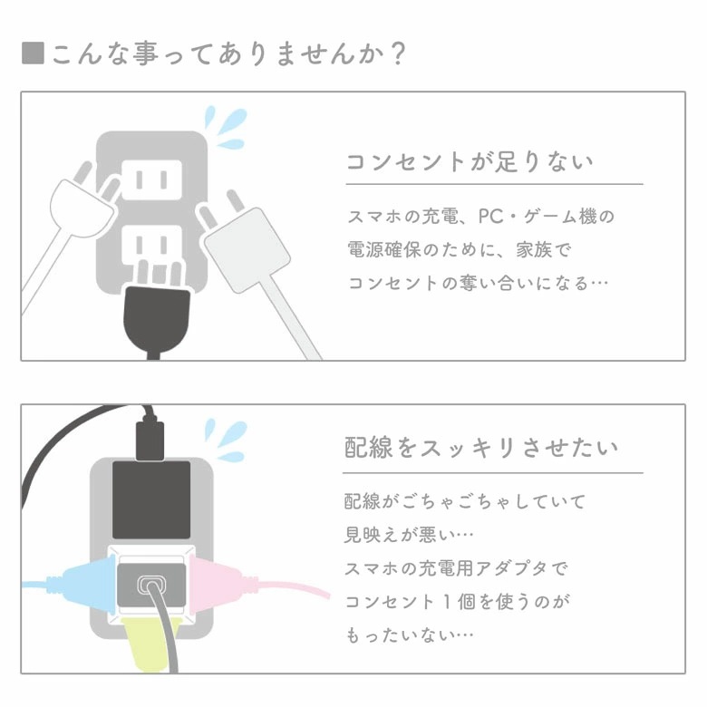 ・オフィスやご家庭のコンセントで使える、USBポート付きのACタップです。