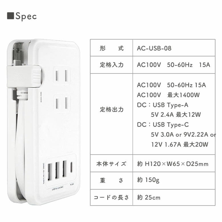 ■名称:PEKO USB/USB Type-C付き ACタップ